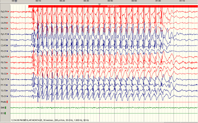 Explaination: The EEG demonstrates the typical 3-Hz spike and wave pattern seen in absence epilepsy. The best medication for absence epilepsy is ethosuximide<br>Valproic acid is also used in absence epilepsy, but typically if there are generalized tonic-clonic seizures in addition to staring episodes. Phenytoin and carbamazepine have the potential to worsen generalized epilepsy.