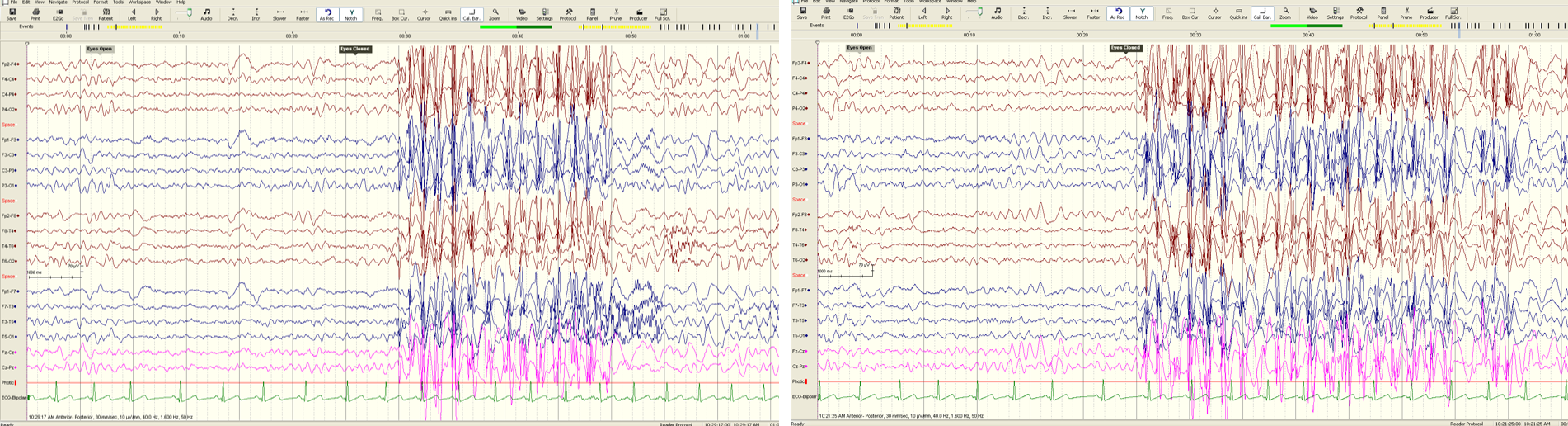 Explaination: Eye closure sensitivity (ECS)<br>Generalized forms of ECS in most of the geneticidiopathic generalized epilepsy (IGE) syndromes, CAE, JAE, JME and especially in EMA or Jeavons syndrome in which ECS plays a diagnostic role<br>In EMA eye closure related discharges appear to be poor prognostic factor