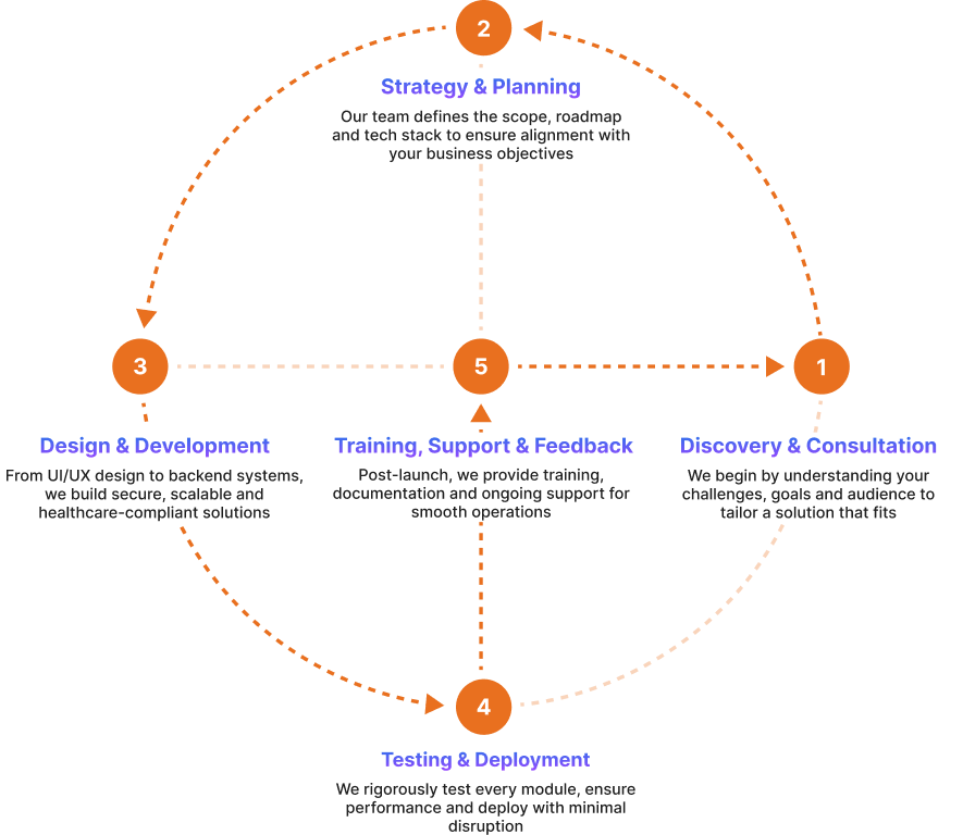 From UI/UX design to backend systems, we build secure, scalable, and healthcare-compliant solutions.